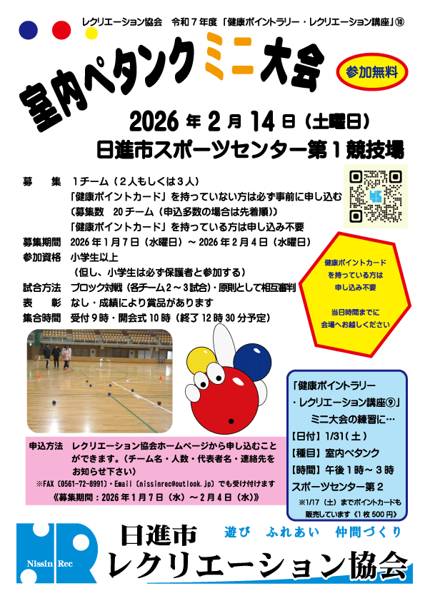 レク協まつり『室内ペタンク ミニ大会』を開催します